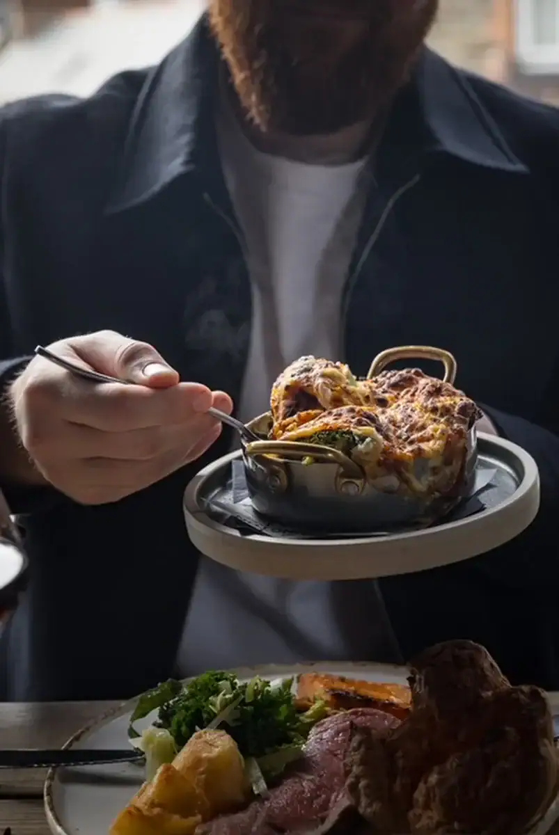 This is not a hurried plate of meat and veg. Restaurant Kensington treats the roast as a proper dining occasion, with well-chosen meats, polished presentation and a full spread served for the table. The menu includes Exmoor sirloin with horseradish cream, pork loin with apple caramel, and chicken supreme, with a nut roast available on request. It is the kind of Sunday lunch that feels a little more special without losing the comfort people actually come for.