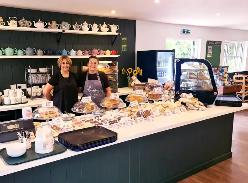 Inside, you’ll find a tempting selection of home-made cakes, hot pasties, and golden sausage rolls, all freshly prepared in the cosy on-site kitchen. Of course, no visit would be complete without a traditional Devon cream tea, served with warm scones, rich clotted cream, and sweet strawberry jam — a proper taste of the South West.